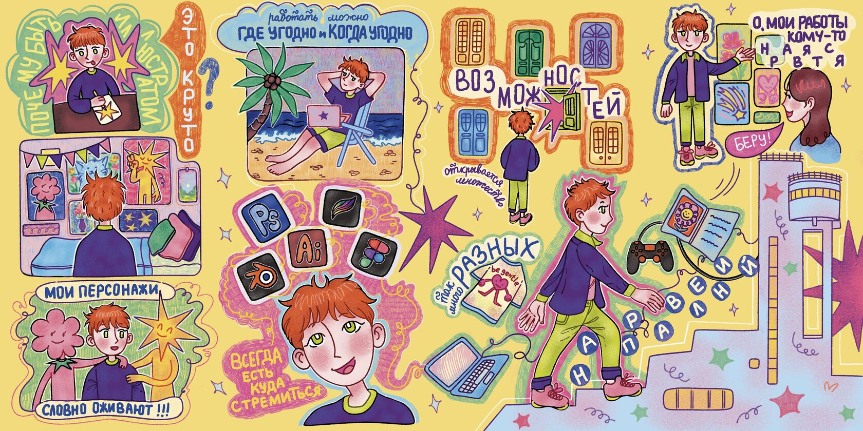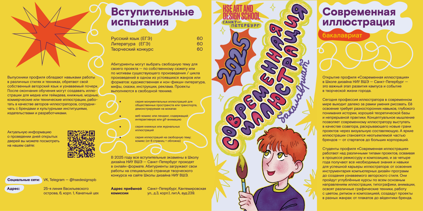 Рекламный буклет, который был сделан в рамках обучения для нового направления Школы Дизайна «Современная иллюстрация» ВШЭ. Почему быть иллюстратором — это круто? Об этом расскажет мой буклет.